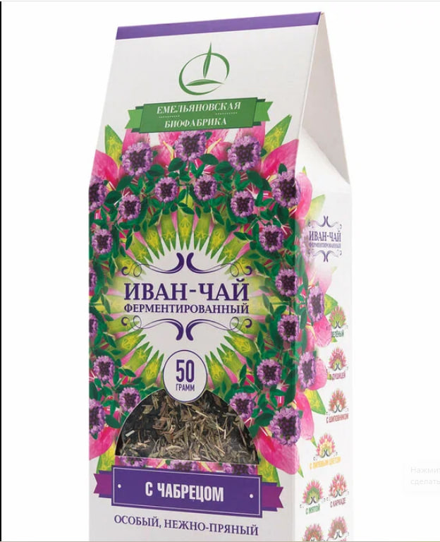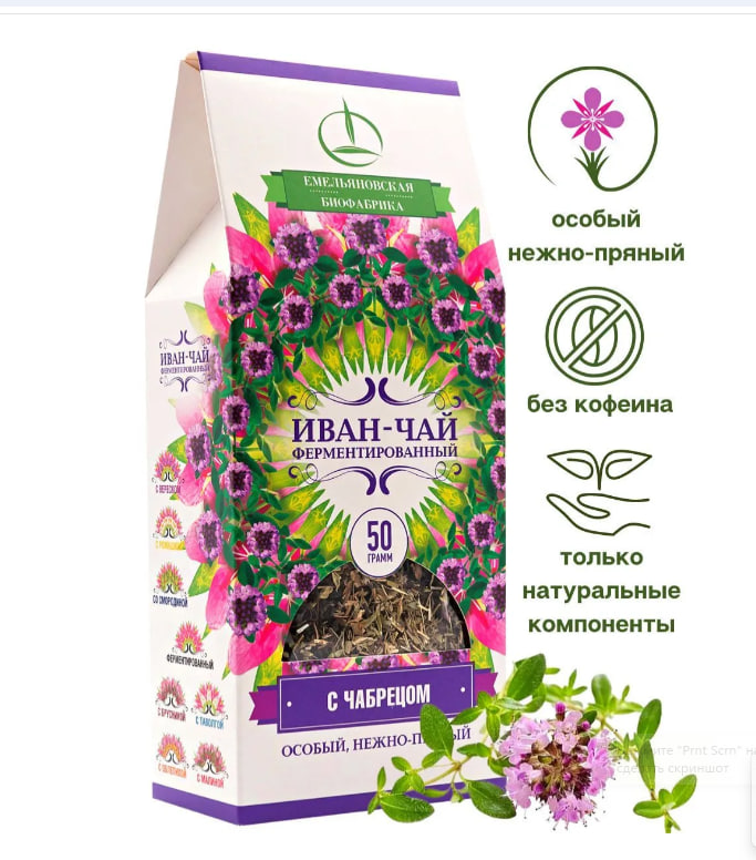 Состав: листья Иван-чая (Кипрей узколистный Epilobium angustifolium L) переработанные ферментированные, чабрец