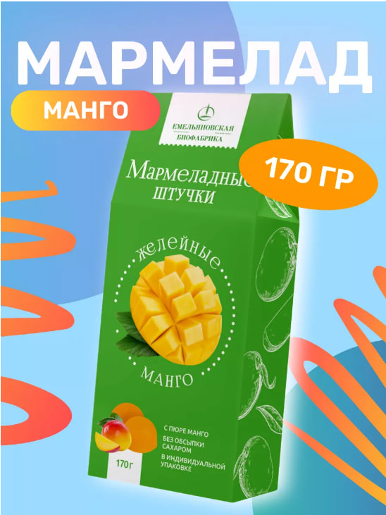 Погрузитесь в экзотический вкус манго с нашим удивительным мармеладом "Манго"! Натуральное манго создает яркий, сочный и неповторимый вкус каждого кусочка мармелада.